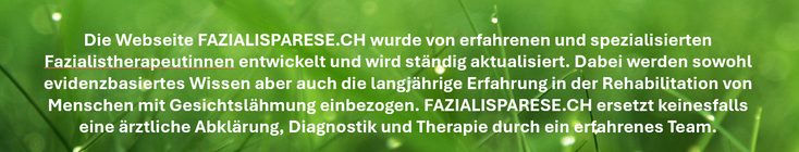 Wir sind eine Gruppe von Schweizer Logopädinnen und Physiotherapeutinnen, die sich mit Diagnose, Therapie und Beratung bei peripherer Fazialisparese auseinandersetzen.